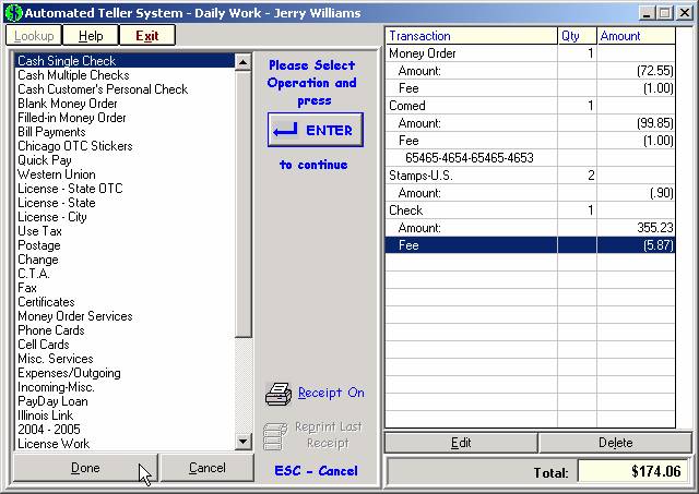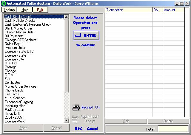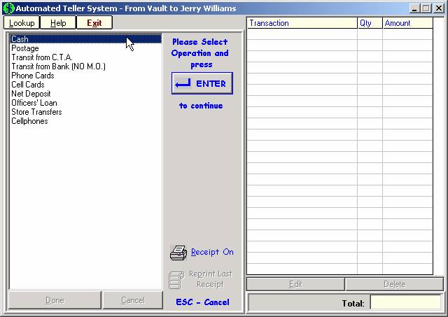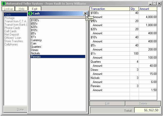 each teller, ATS keeps track of all customer transactions as well as drawer Inventory.