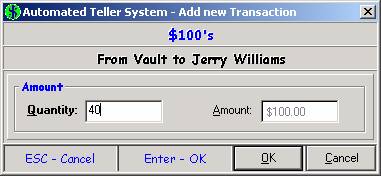 inventory from the Vault to the teller drawer.