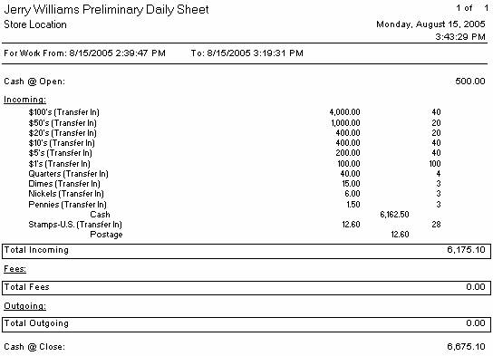 8.) The Teller Daily Sheet prints.