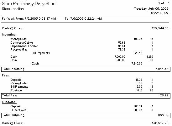 The Store Daily Sheet can be